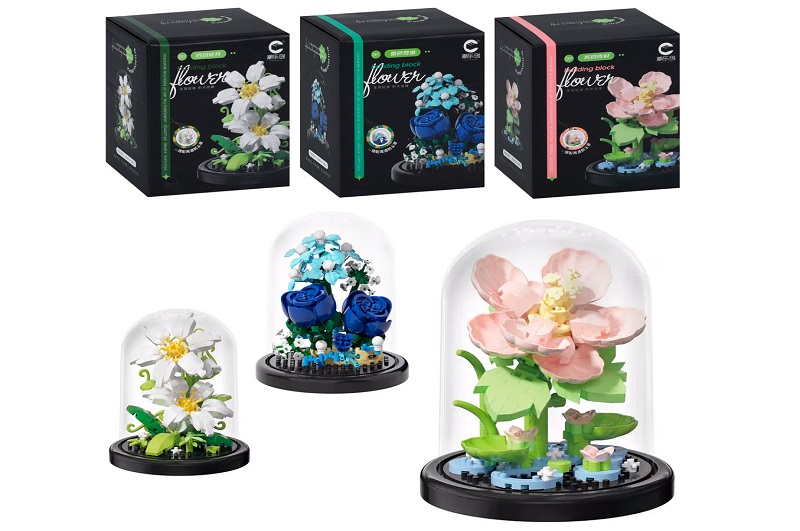 Конструктор 7234-7235-7242 (60шт) квіти у колбі, 8,6-8,6-10,5см, від 247дет, 3 види, в кор-ці, 9-11,
