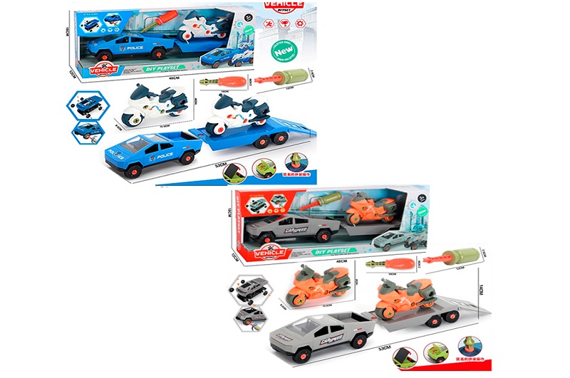 Конструктор 7654-B1A-B1B (24шт) на шурупах, машина з причепом, 53см, мотоцикл, викрутки, 2 види (1ви