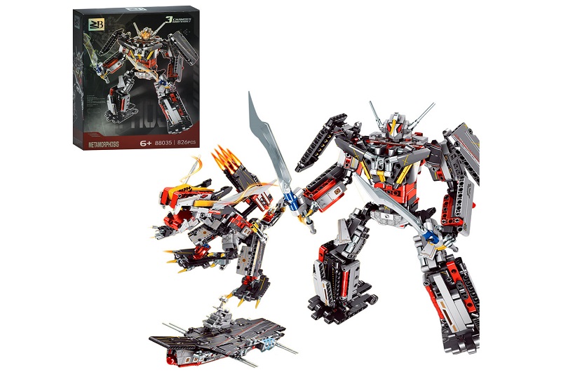 Конструктор 88035A (12шт) 3в1(робот, динозавр, авіаносець), 826дет, в кор-ці, 29,5-40,5-9,5см