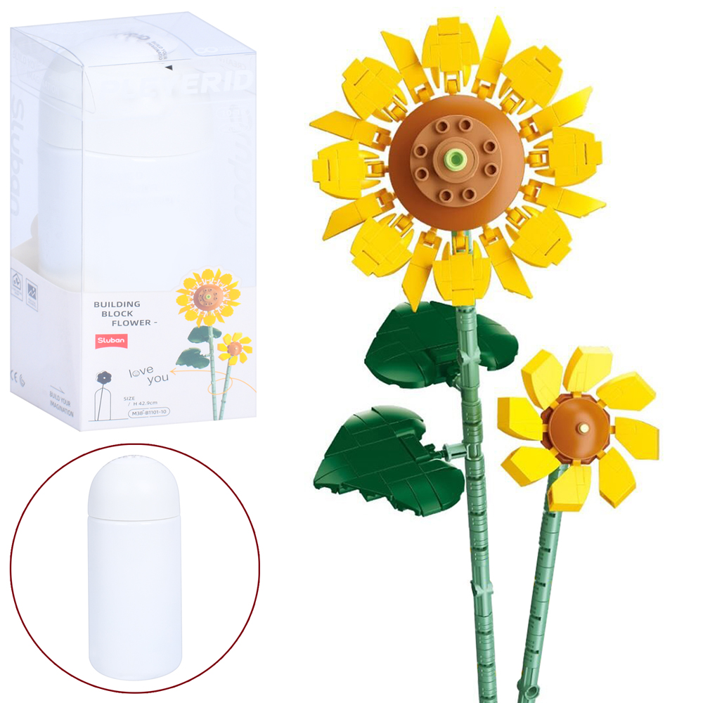 Конструктор SLUBAN M38-B1101-10 (32шт) квіти (соняшник), 42,9см, колба, в кор-ці/слюда, 9,5-22-9,5см