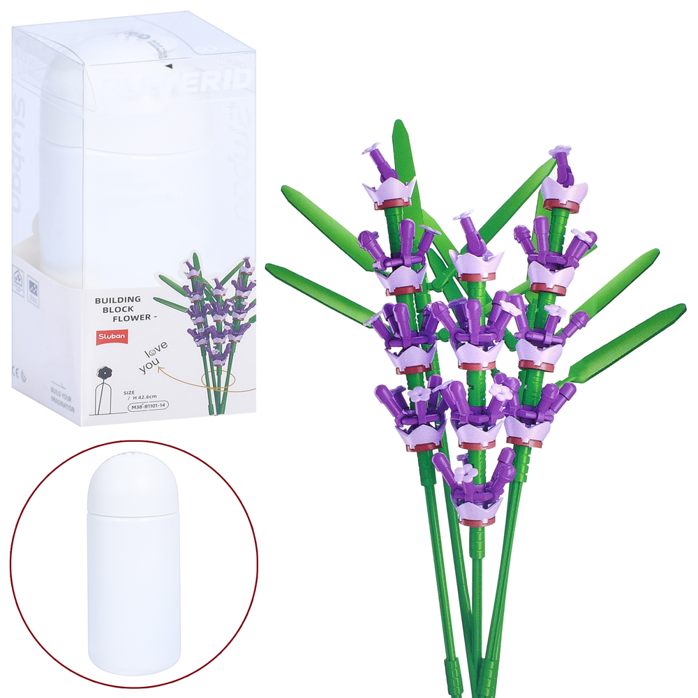 Конструктор SLUBAN M38-B1101-14 (32шт) квіти, лаванда, 42,6см, колба, в кор-ці(слюда), 9,5-22-9,5см