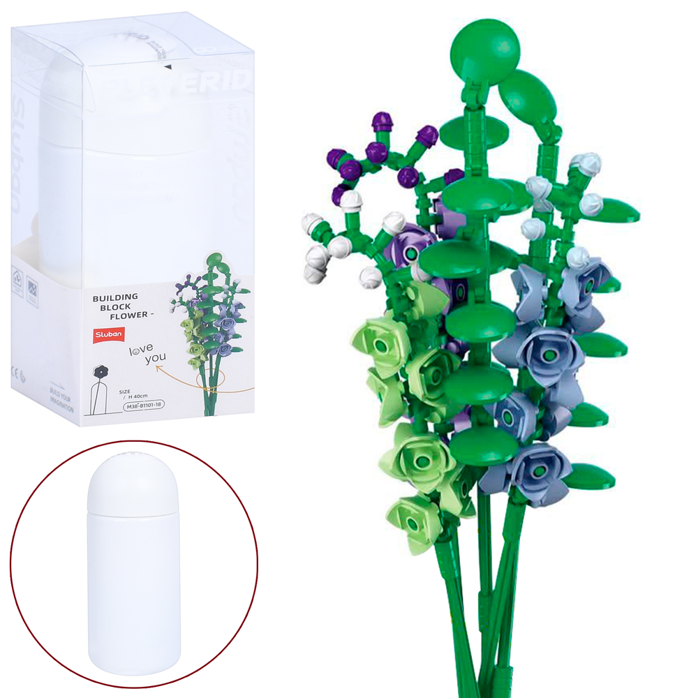 Конструктор SLUBAN M38-B1101-18 (32шт) квіти, дельфініум, 40см, колба, в кор-ці(слюда), 9,5-22-9,5см