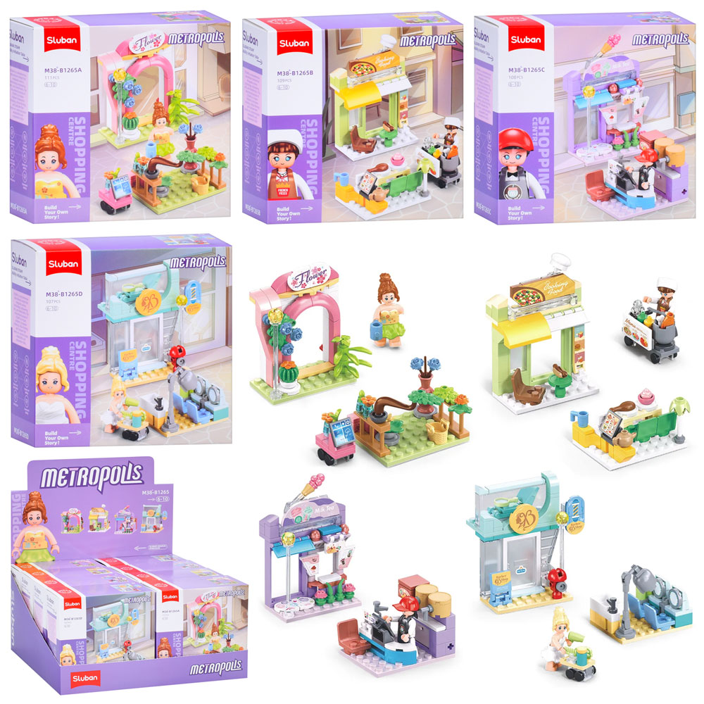 Конструктор SLUBAN M38-B1265 Упак8шт(96шт)рожева серія,магазин/салон,фігурка, від 107дет,в кор-ці, (