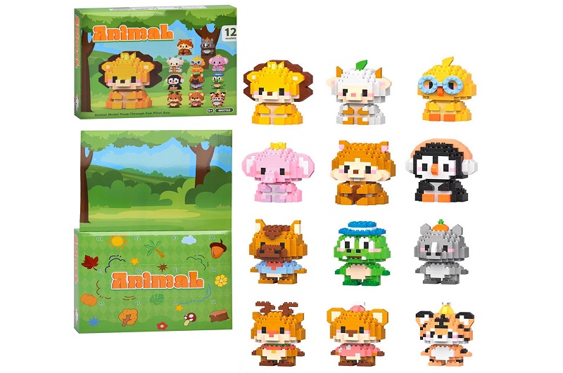 Конструктор W0702 (24шт) дикі тварини, 12шт, адвент-календар, в кор-ці, 29,5-22,5-5см