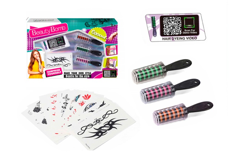 Косметика RY6267 (72шт) крейда для волосся 3шт/3кольори, тату, в кор-ці, 33-20,5-4см