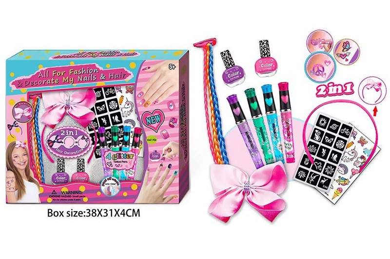 Косметика арт. L5293 (72шт/2) лаки, наліпки, аксес для волосся та татуажу короб. 38*31*4