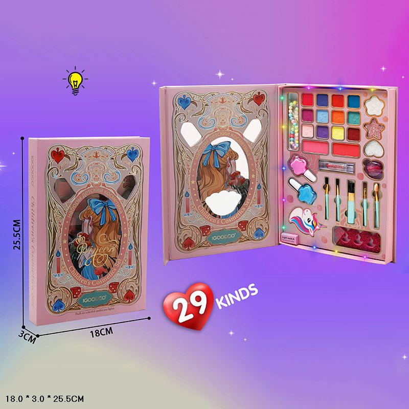 Косметика арт. UKR2401 батар. палетка, лак, помада, тіні, світло, аксес у короб. 18*3*25см