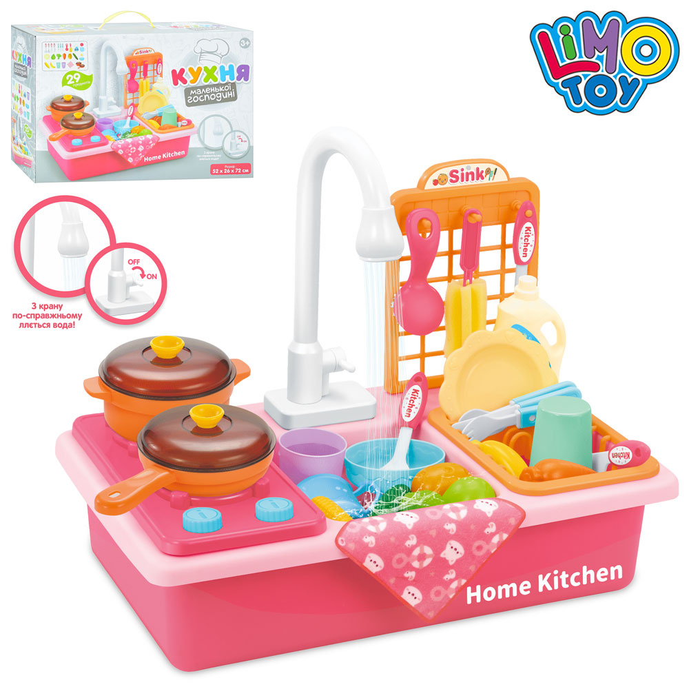 Кухня WD-Y41 (18шт) мийка (ллється вода), 39,5-24,5-34см, плита, посуд, продукти, 29предм, на бат-ці