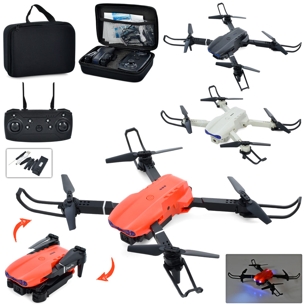 Квадрокоптер E99 (4шт) р/к, акум,20см,камера, світло,зап.лоп,USBзар,3 кольори,в валізі, 21-16-6см