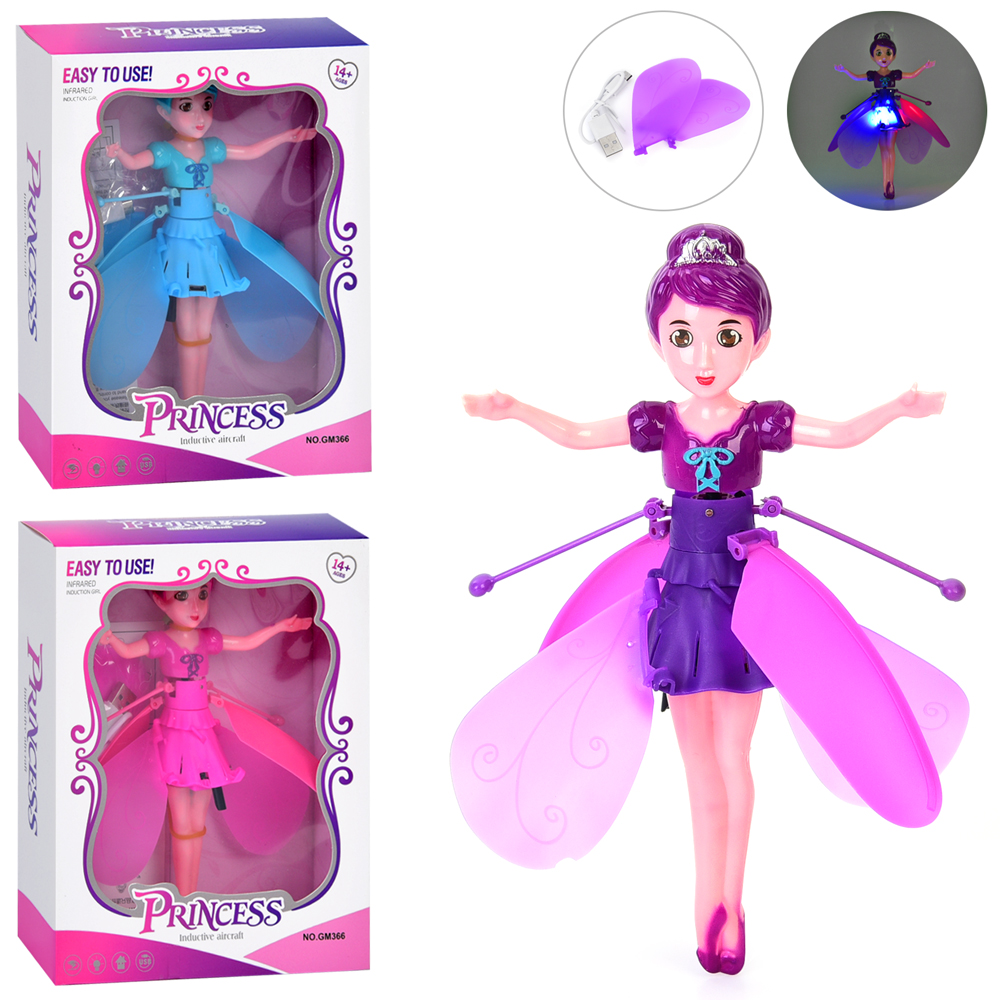 Лялька 389 (60шт) 19см, фея, літає, реагує на руку, світло, акум, USBзарядне, 3 кольори, в кор-ці, 1