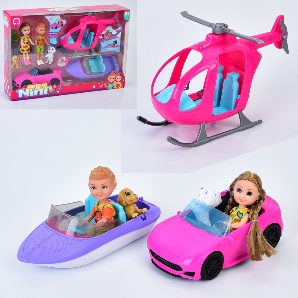 Лялька 55881 (18шт) 2шт, 14см, собачки 2шт, вертоліт 23см, човен, машина, в кор-ці, 42,5-29-10см