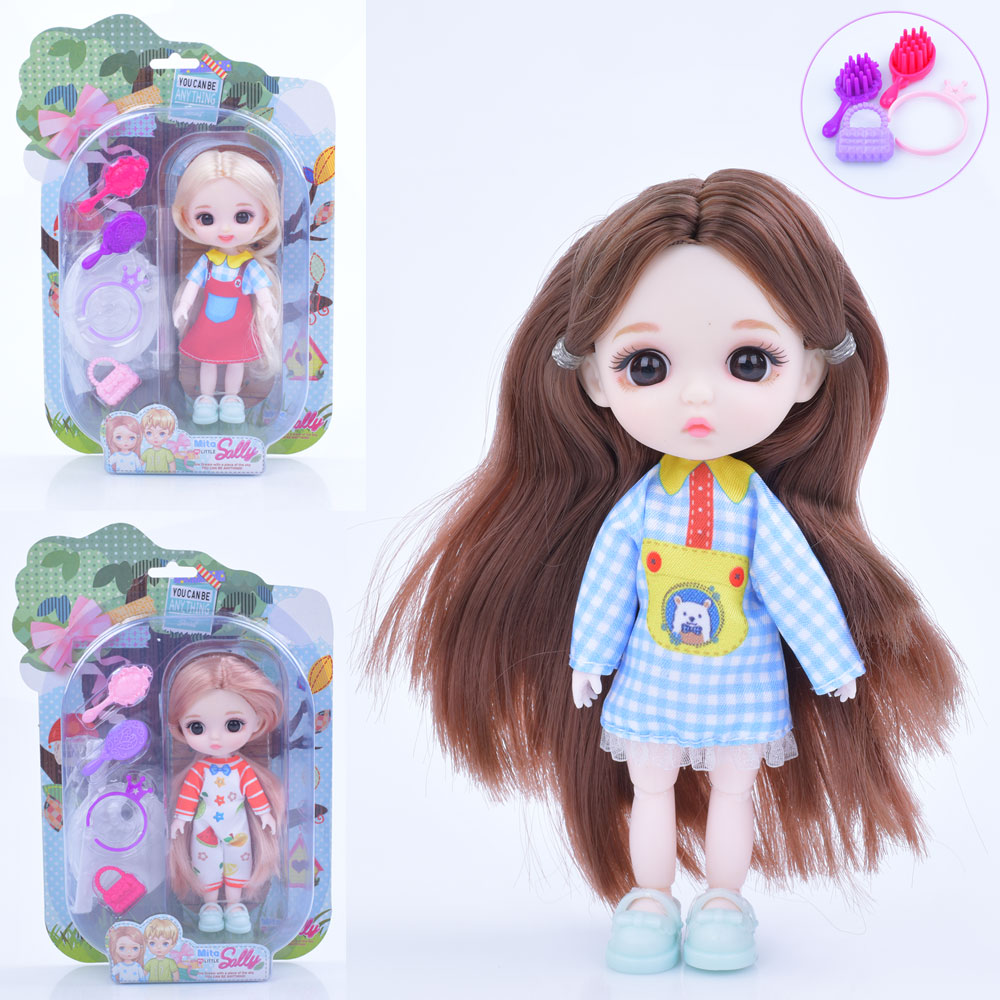 Лялька 91053-A (60шт) 14см, шарнірна, підставка, аксесуари, 3 види, на листі, 16,5-23-5см