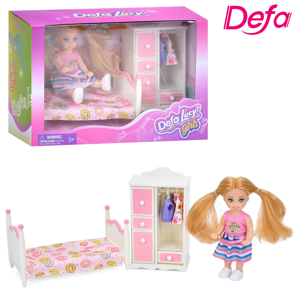 Лялька DEFA 8811 (36шт) 11см, шарнірні ноги, шкаф, ліжко, вбання, в кор-ці, 21,5-14-8см