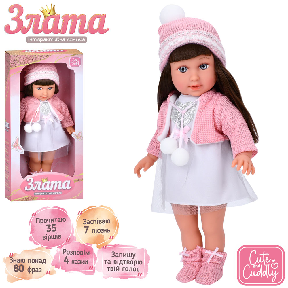 Лялька M 5974 I UA (14шт) Злата, 40см, м'яконабивна, інтерактивна, музика, звук(укр), пісні, вірші,