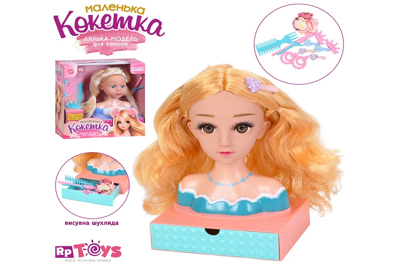 Лялька голова для зачісок LK1715F-16С (18шт) 20см, підставка з шухлядкою, прикраси (заколки, сережки