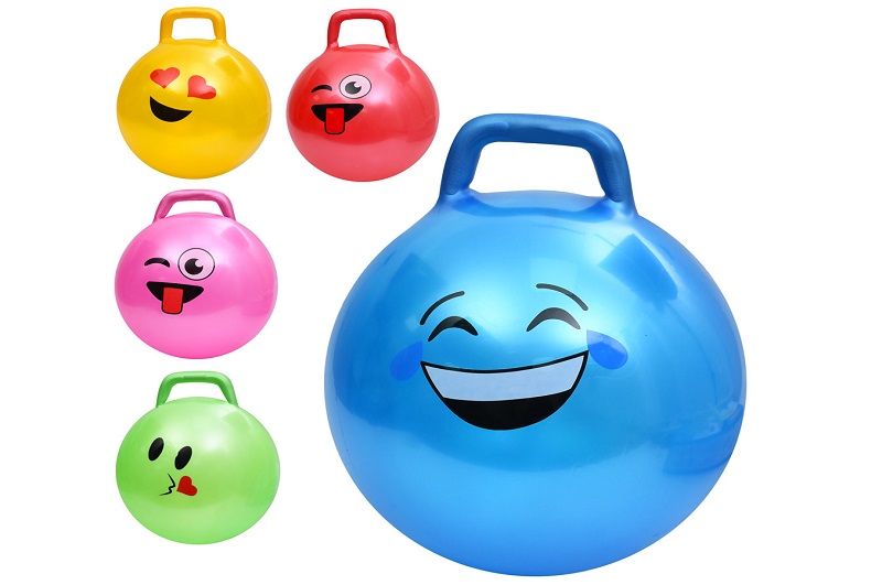 М'яч для фітнесу MS 4856 (30шт) 45см, з ручкою, смайл, 300г, 5видів/5 кольорів, у пакеті, 15-15-6см
