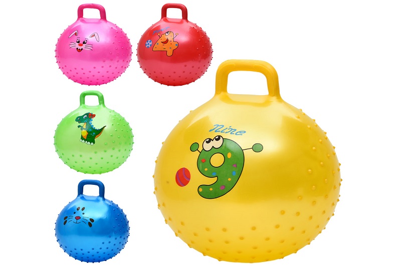 М'яч для фітнесу MS 4857 (25шт) 45см, з ручкою, 350г, масажний, мікс видів/5кольорів, у пакеті, 19-1