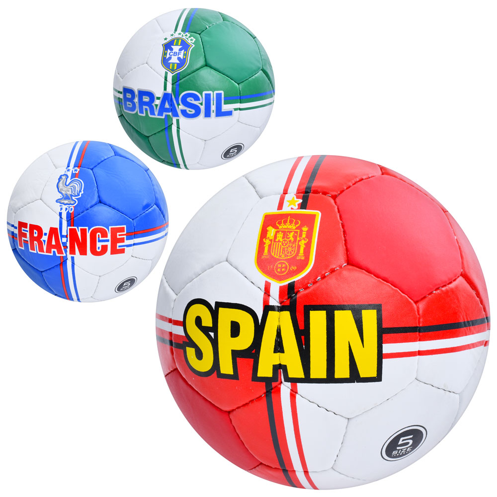 М'яч футбольний 2500-286 (30шт) розмір5,ПУ1,4мм,ручна робота, 32панелі, 400-420г, 3види(країни), в п