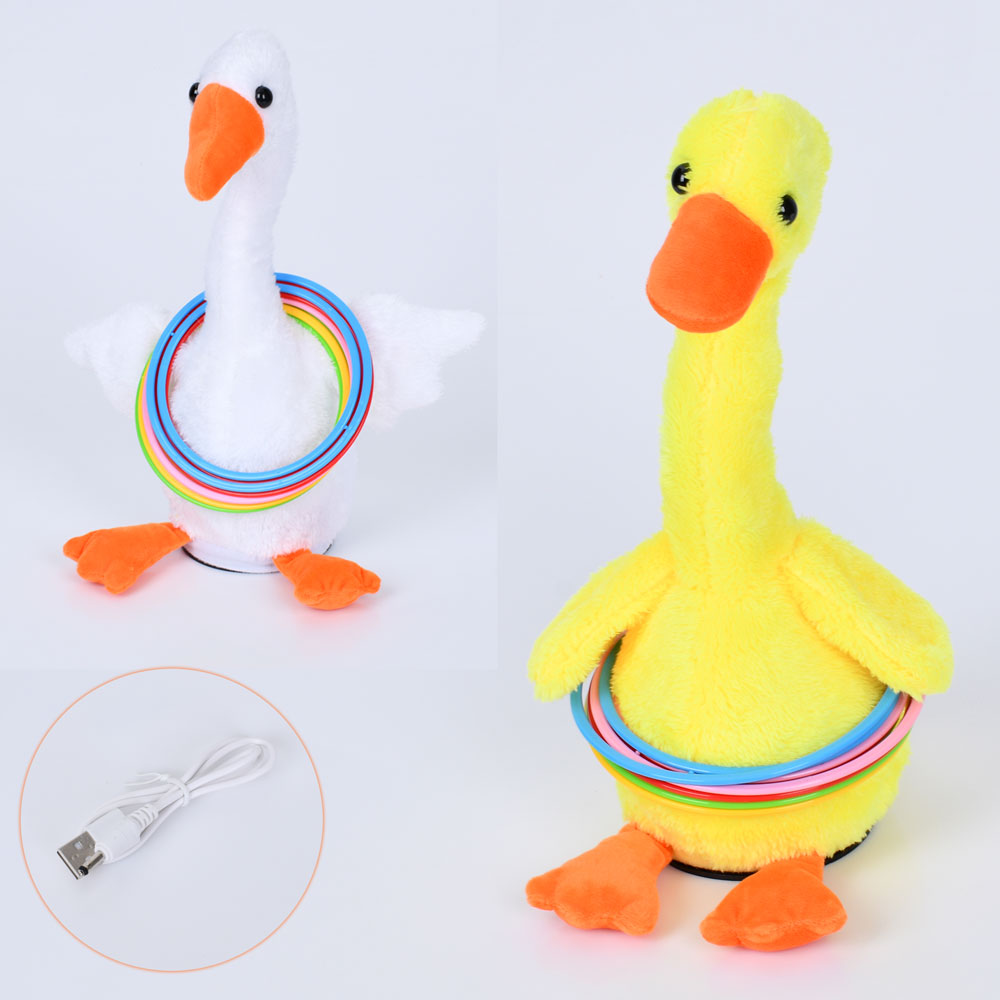 М'яка іграшка 1627-A (32шт) гусак 30см, акум, USBзарядне, музика, танцює, плюш, кільця, 2 кольори, у