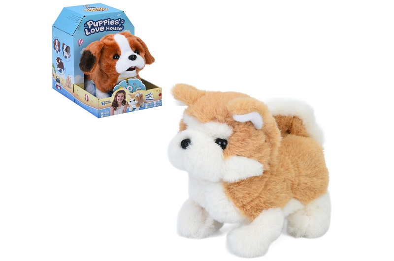 М'яка іграшка L0784-85 (30шт) собака, 18см, ходить, звук, рухливі хвіст та голова, 2 види, на бат-ці