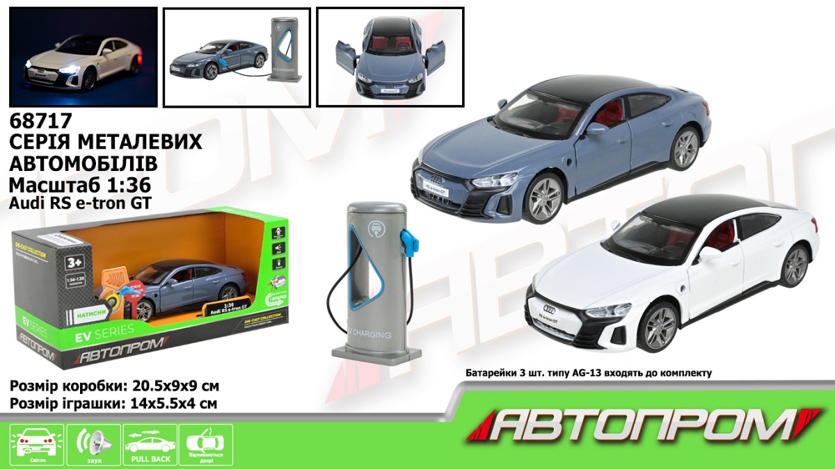 Машина (електро) мет. АВТОПРОМ арт. 68717 (32шт ) 1:36 Audi RS e-tron GT",батар.,світло,звук,відкр."