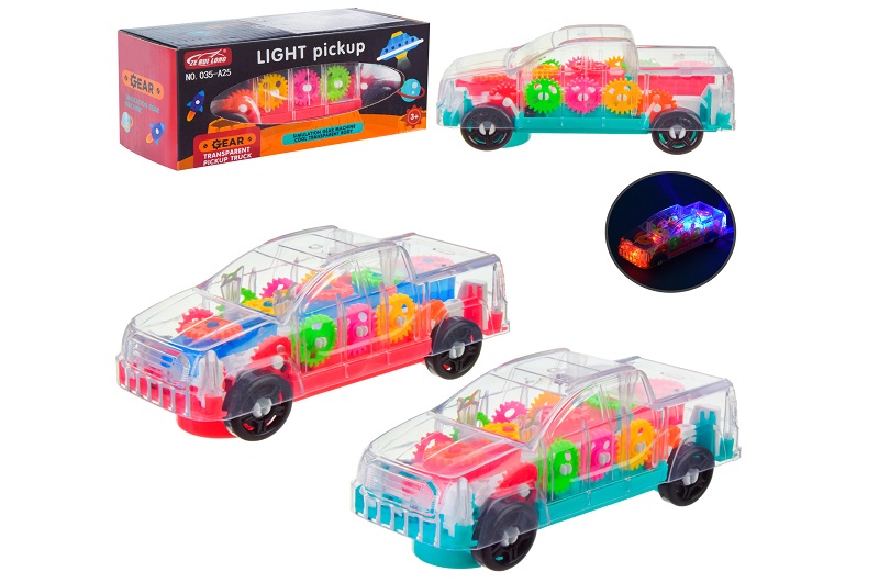 Машинка арт. 035-A25 (120шт/2)2 кольори мікс, прозорий корпус, кольорові внутрішні деталі,світло, зв