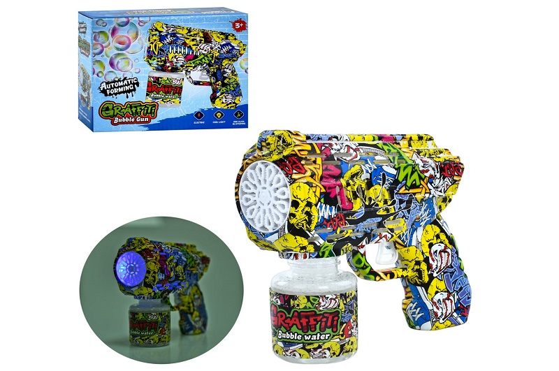 Мильні бульбашки 859 (36шт) пістолет/бластер, 16см, графіті, світло, запаска 7см, на бат-ці, в кор-ц