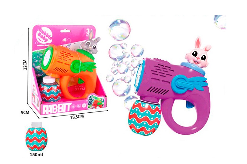 Мильні бульбашки BE-013 (30шт) пістолет (кролик), 18см, запаска 8-6,5см, 2 кольори, на бат-ці, в кор