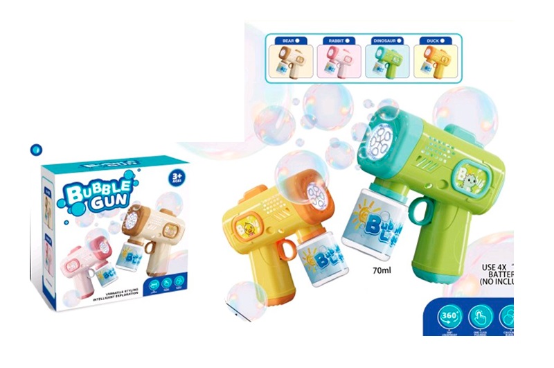Мильні бульбашки ME-239 (36шт) пістолет, 13см, світло, запаска 7-4,5см, 4 кольори, на бат-ці, в кор-