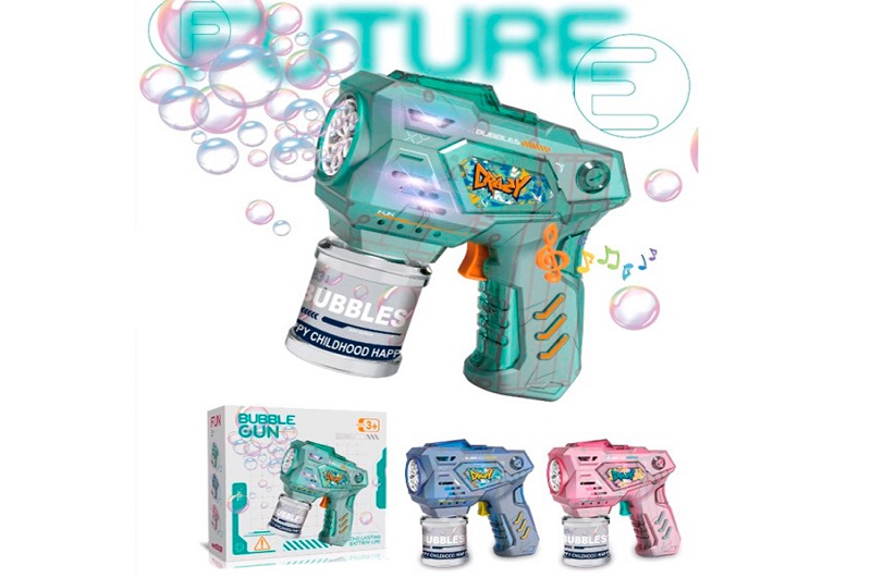 Мильні бульбашки YD6671A (60шт) пістолет, 12,5см, світло, запаска 7,5-5см, 3 кольори, на бат-ці, в к