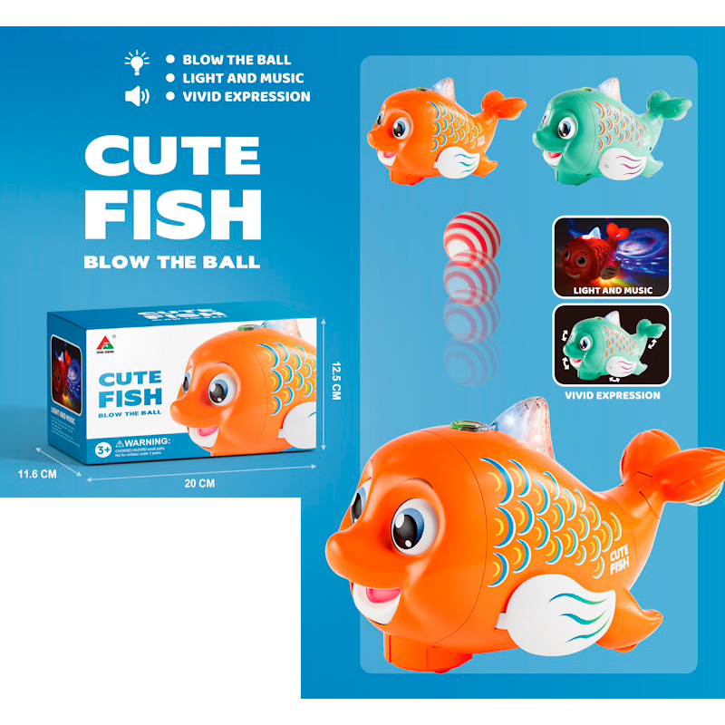 Музична іграшка FW338-1A (36шт) рибка, 21см, музика, світло, їздить, випускає повітря, 2 кульки, 2 к
