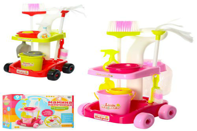 Набір для прибирання 667-33-35 (8шт) візок, 51,5-32-32см, щітки, відро, совок, 2 кольори, в кор-ці,