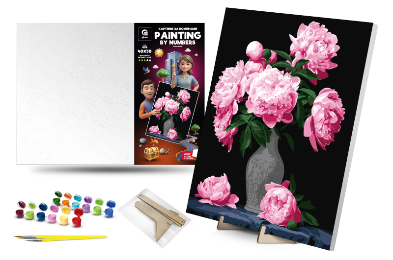 Набір для розпису по номерах QB900-037 Букет півоній" 40х50см qbee"