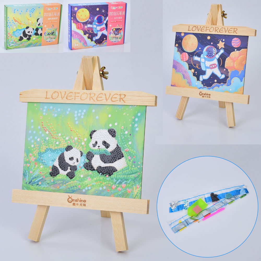 Набір для творчості 3775-82 (12шт) алмазна мозаїка, 20,5-15,5см, мольберт 23-32-18,5см, 2 види, в ко