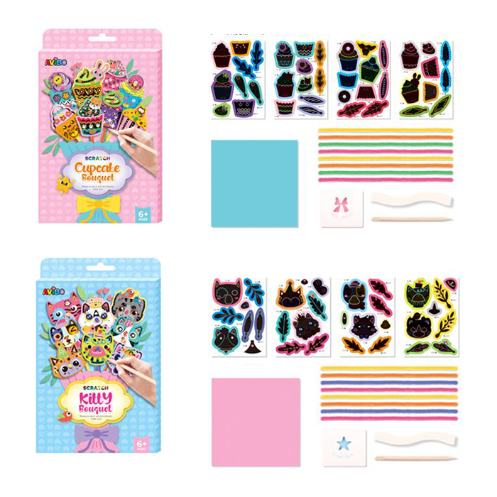 Набір для творчості A1102-3 (120шт) Букет, скретч-арт, 4 картки, синельний дріт 8шт, 2 види(Букет ка