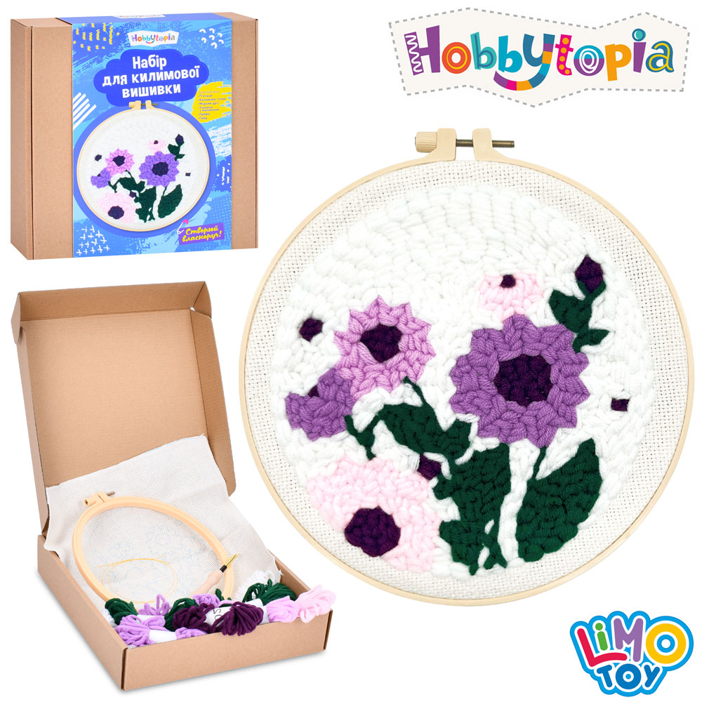 Набір для творчості DYPN1008-11 (40шт) килимова вишивка, канва 26-26см, нитки, п'яльця 20см, килимов