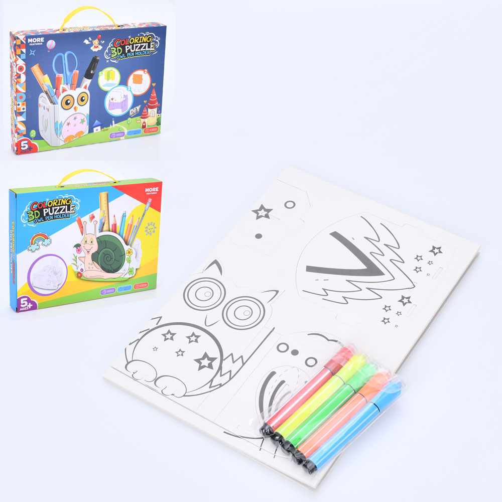 Набiр для творчостi MK 5425 (30шт) стакан для ручок, фломастери, розмальовка, 2 види (сова, равлик),