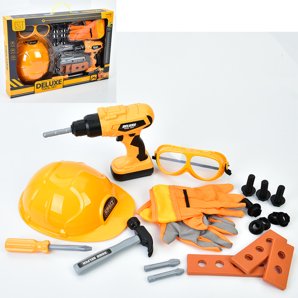 Набір інструментів HB3299-13 (12шт) каска, шуруповерт-оберт.насадка, рукавички, молоток, 20дет, на б