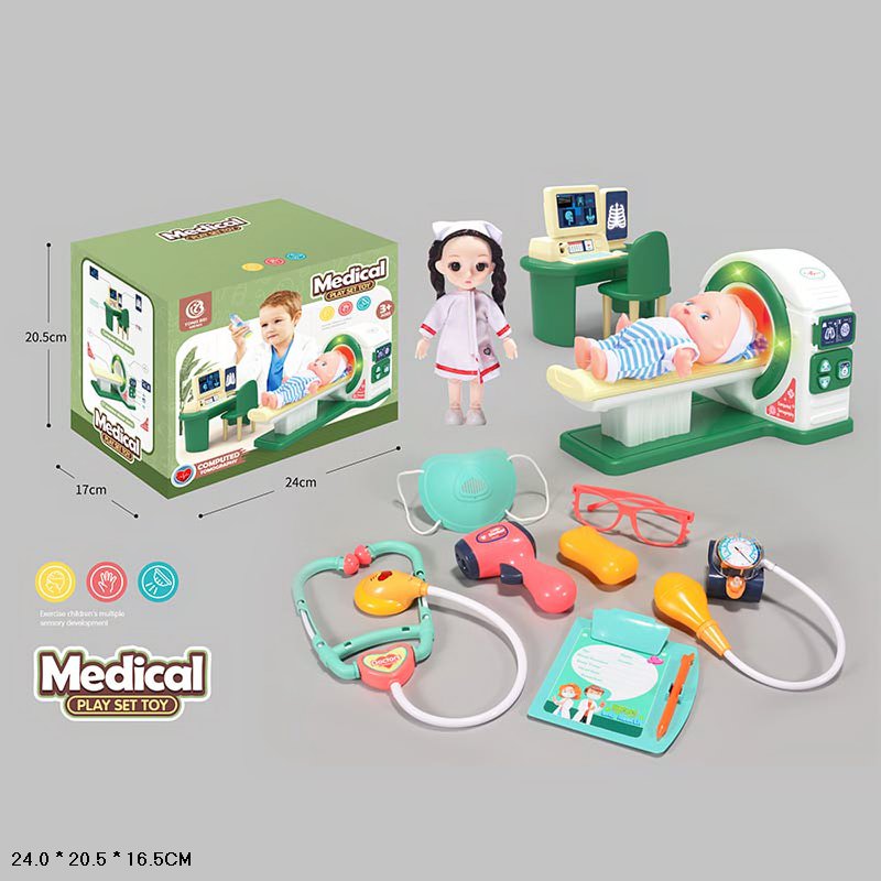 Набір лікаря арт. RX-828B (24 шт/2) світло, звук, мрт апарат, лялька, пупсик, комп'ютер, градусник
