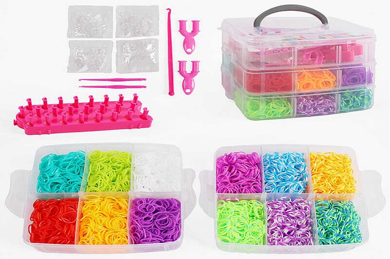 Набір резиночок для плетіння J 787 (36/2) 12 кольорів, пластикова фурнітура, рогатки, гачки, верстат