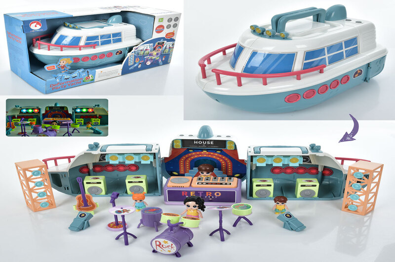 Набір з фігурками GB0512 (4шт) 2в1, яхта для вечірок 32см, фігурки 2шт 8см, муз.інструменти,муз,звук