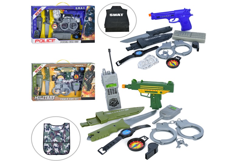 Набір зі зброєю JC007A-13A (12шт) 10предметів,звук,світло,на бат-ці (табл),2види,в кор-ці, 46-29-5см