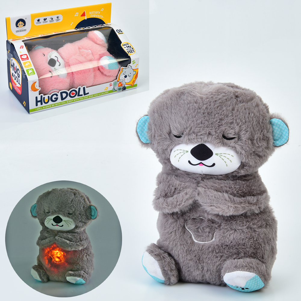 Нічник 988-39 (24шт) 25см, музика, світло, дихає (рухливий живіт), плюш, 2 кольори, на бат-ці, в кор