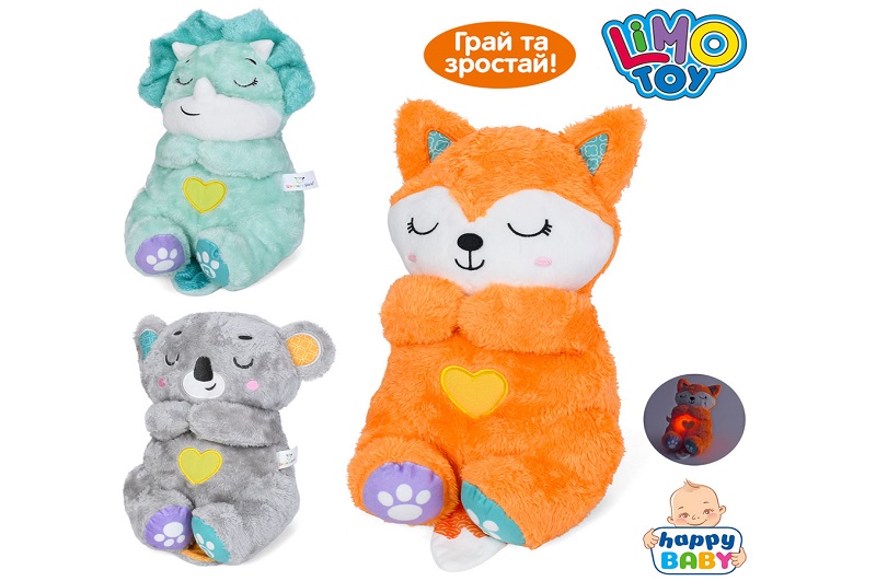 Нічник HB 0122 ABC (12шт) тварина 28-19-12см, музика, світло, спить (рухливий живіт), плюш, 3 види (