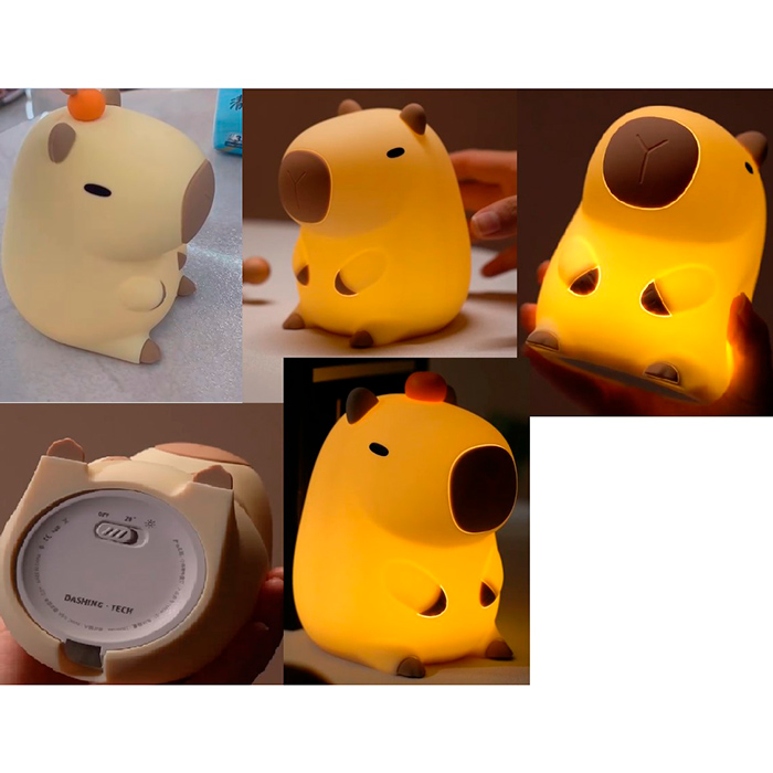 Нічник SNL-1 (24шт) капібара, 9-11-12,5см, 2 рівні яскравості, таймер 20хв, акум, USBзарядне, в кор-