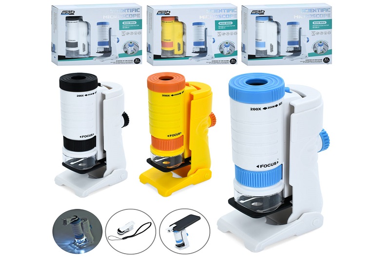 Оптичний прилад W5804B (48шт) мікроскоп, 13см, 60-200 Х, світло-2режими, 3 кольори, бат(табл), в кор