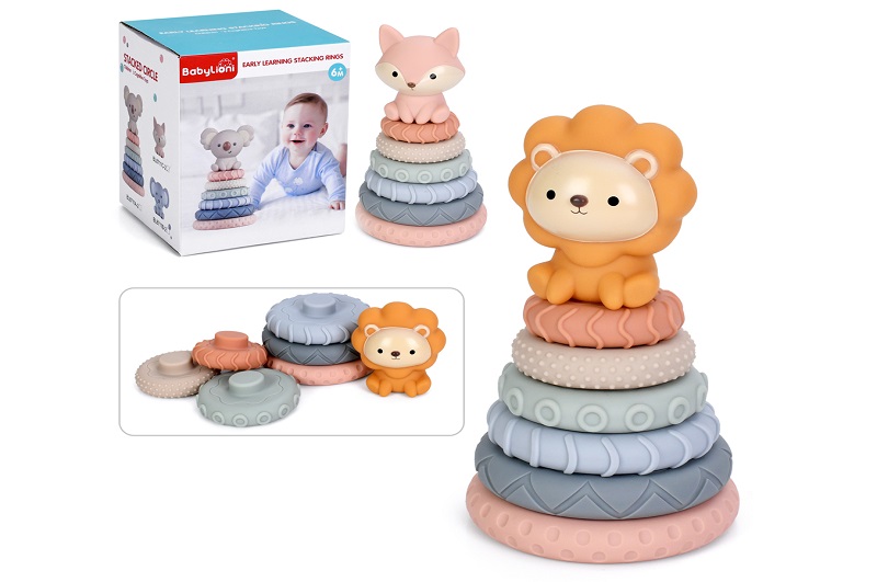Пірамідка BL8711C-11АF-2 (30шт) кільця 6шт(текстурні, пазли), м'яка, 2 види (лисичка 17см, лев 16,5с