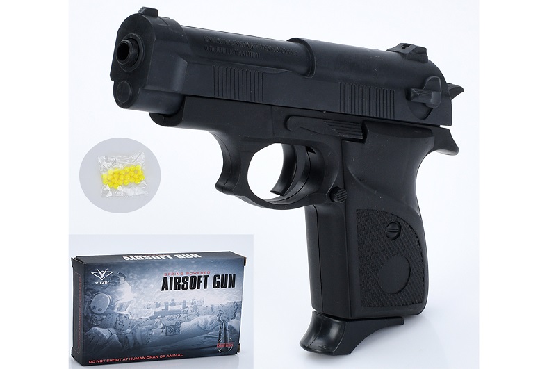 Пістолет 034 (144шт) 15см, пластикові кулі, в кор-ці, 16-10,5-3,5см