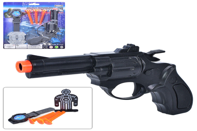 Пістолет 169HT-HV (216шт) 16 см, кулі присоски 3шт,годинник,мішень,2 види,на листі 21-19-3см