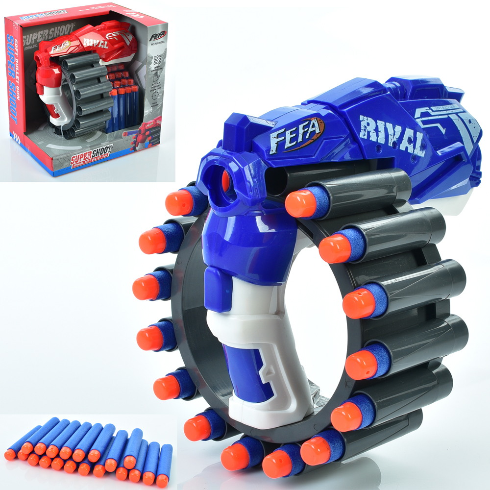 Пістолет AK-9228A (18шт) 18см, м'які кулі 20шт, 2 кольори, в кор-ці,20-20,5-15см